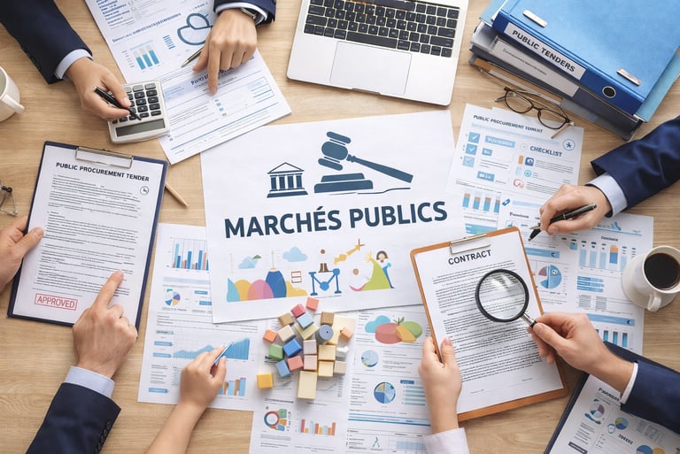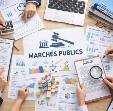 Définition du besoin / Rédaction des pièces marché / accompagnement en phase de consultation / analyse des offres / courriers d'attribution et de rejet